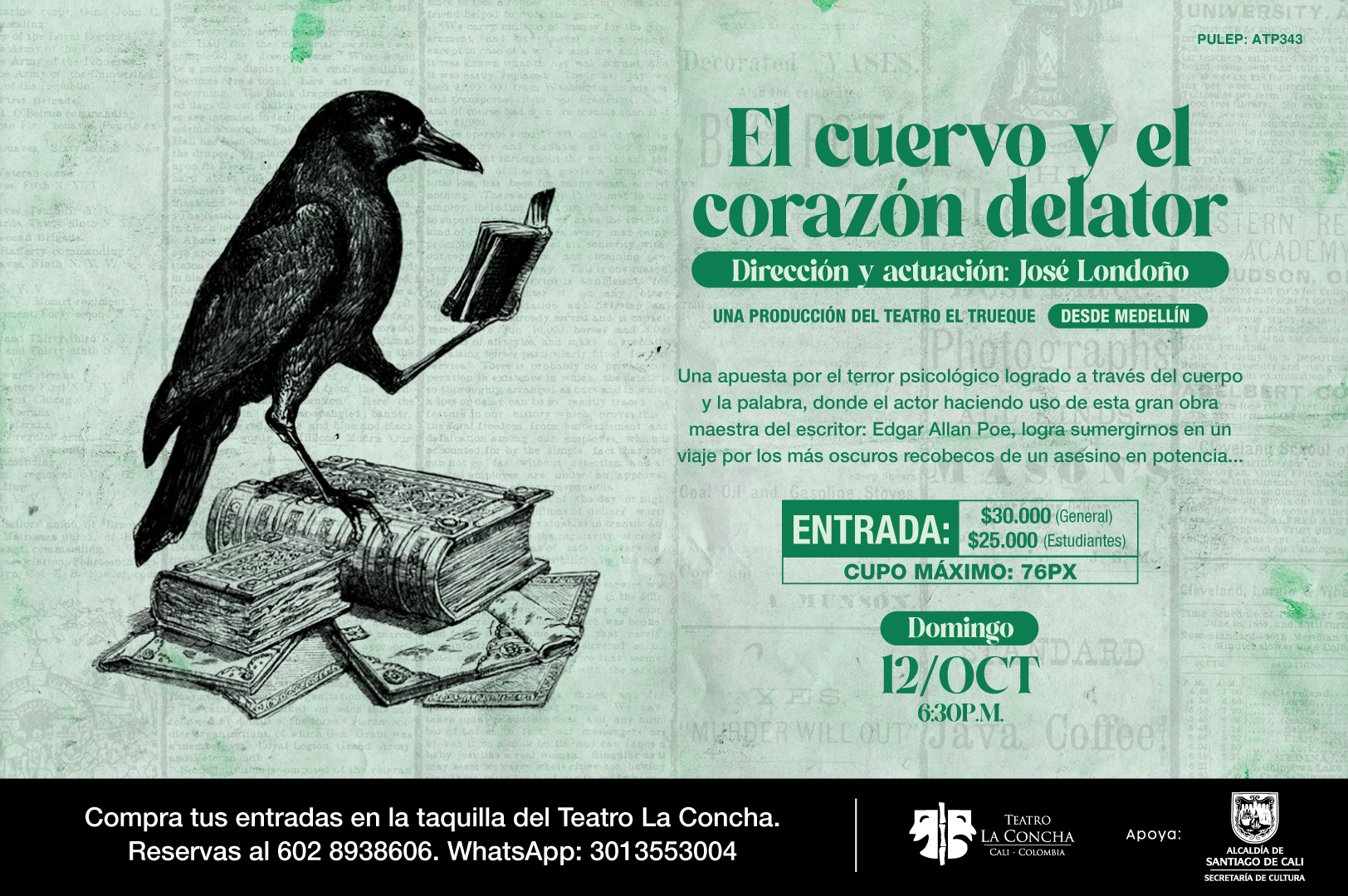 Este domingo llega desde Medellín “El Cuervo y el Corazón Delator”, dirigido y actuado por José Londoño. Una producción del Teatro El Trueque.