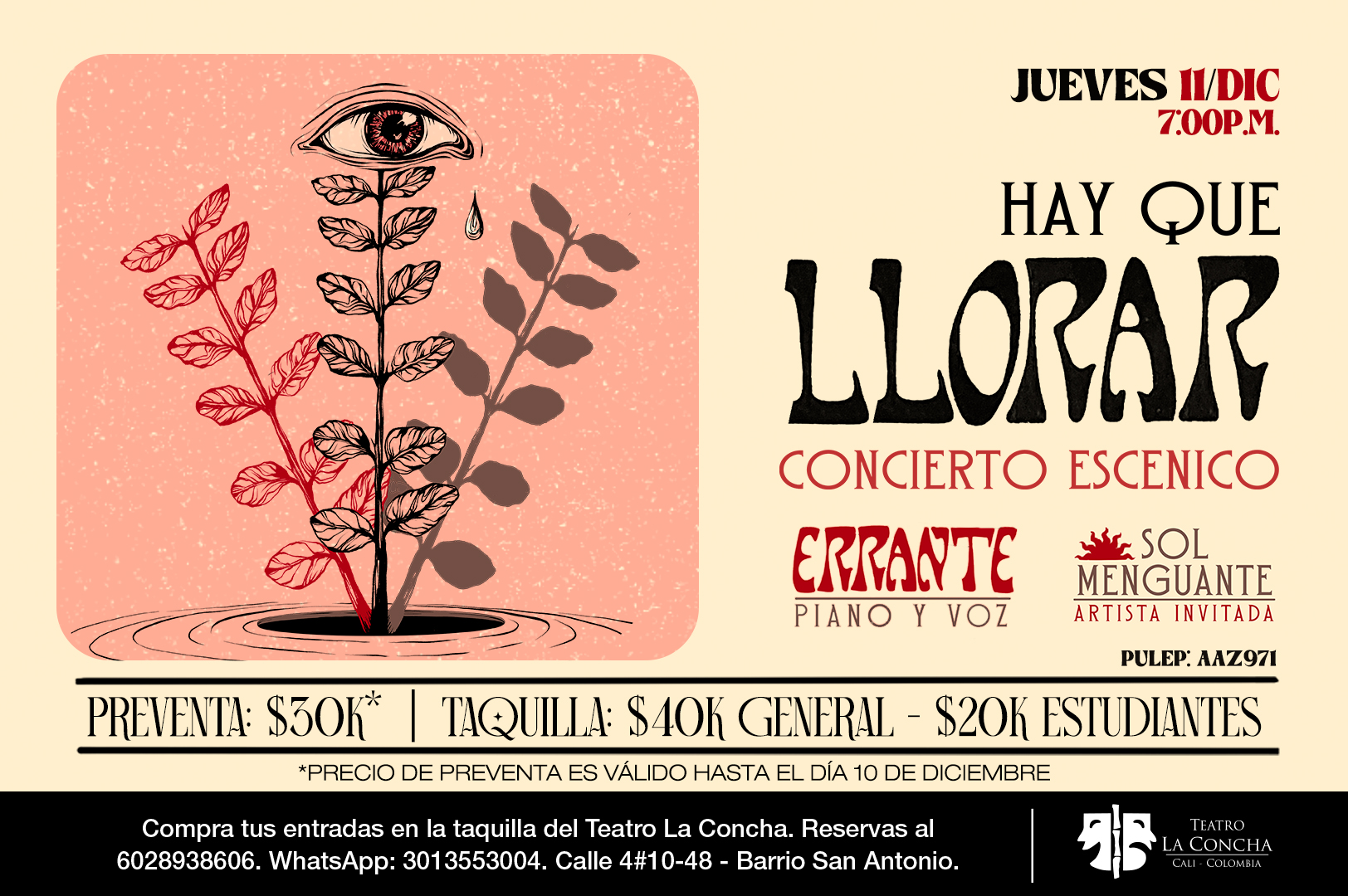 En esta segunda semana de diciembre se presentará en nuestra sala “Hay que llorar” un concierto escénico dirigido de la mano de Stephanie Alzate.
