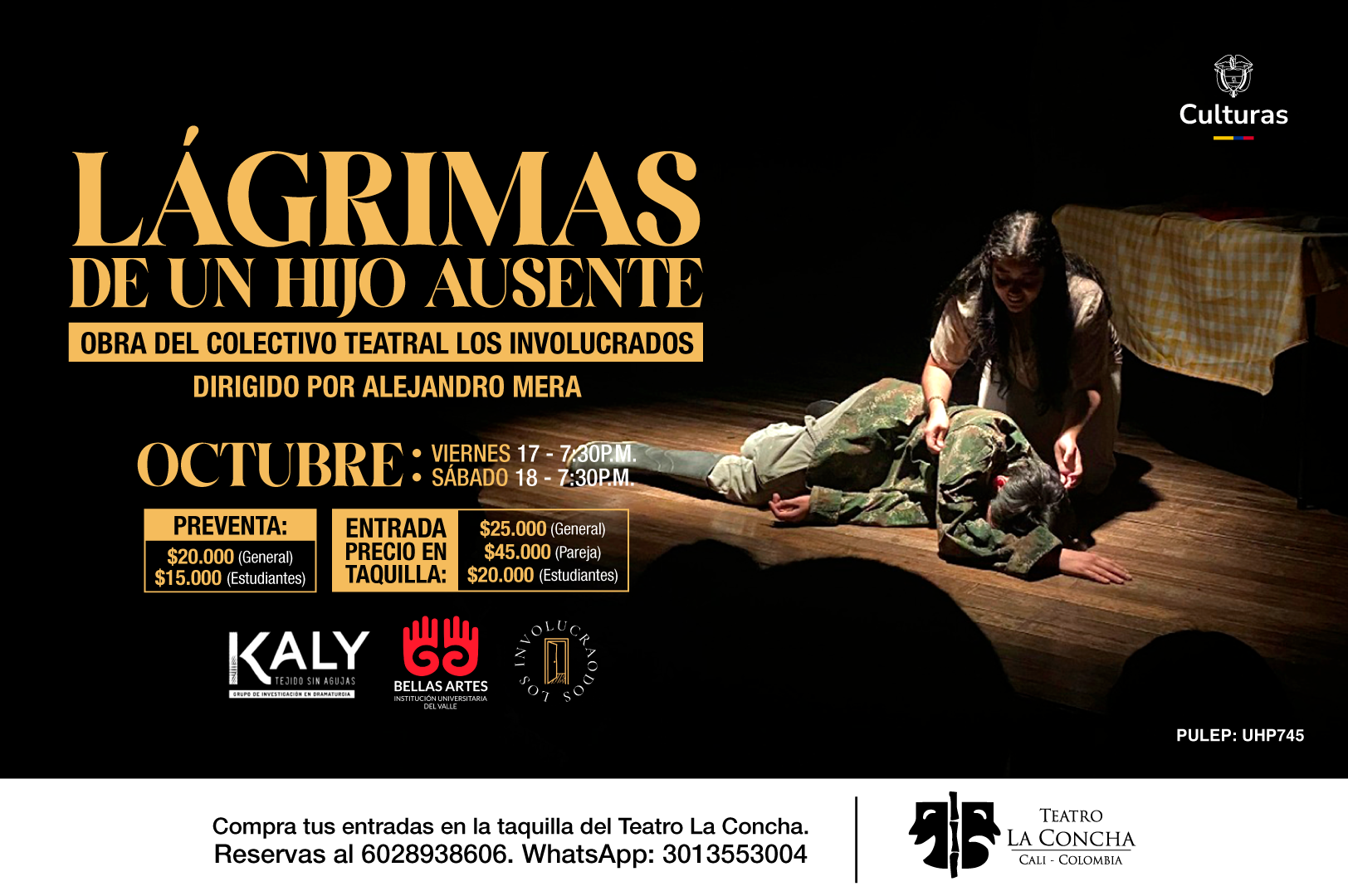 Este fin de semana estará con nosotros “LÁGRIMAS DE UN HIJO AUSENTE” de la🚪CREACION COLECTIVA DE LOS INVOLUCRADOS y dirigido por ALEJANDRO MERA.
